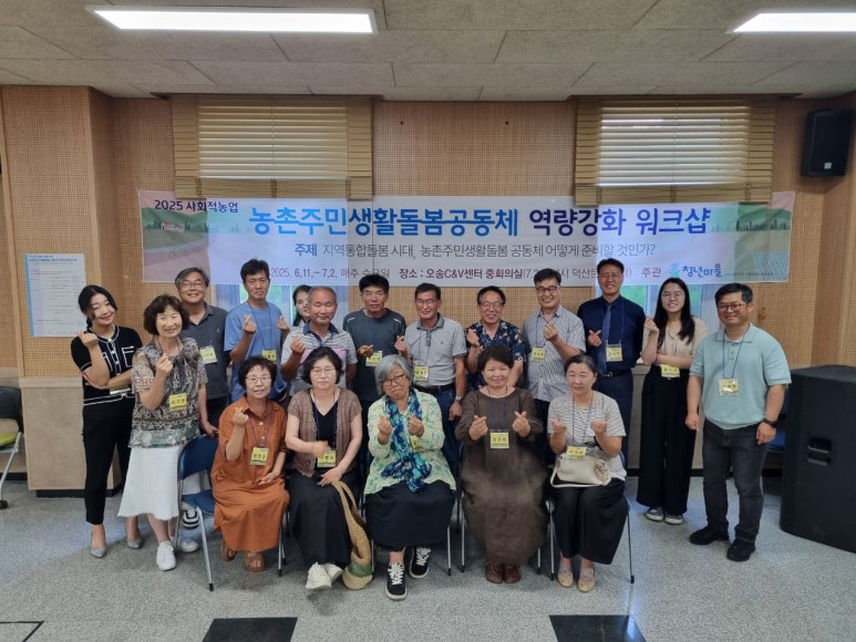 … 충북·세종권역 사회적 농업 거점농장인 농업회사법인 청년마을㈜(이하 ‘청년마을’로 약칭)은 2025년 6월 11일부터 7월 2일까지 매주 수요일, ‘지역통합돌봄 시대, 농촌주민생활돌봄 공동체 어떻게 준비할 것인가?’를 주제 삼아 네 차례의 연속 워크숍을 개최했다. 이번 교육에는 농촌주민생활돌봄공동체 시범사업팀, 사회적 농업 현장 관계자, 농촌 돌봄에 관심 있는 주민 등 50여 명이 함께했다. …